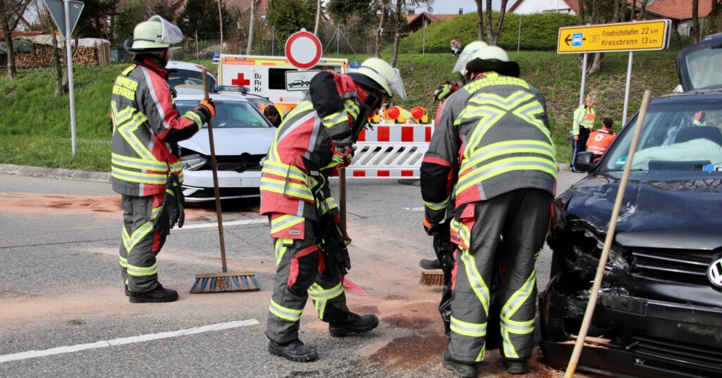 An der Einsatzstelle unterstützten wir den Rettungsdienst bei der Versorgung der Patienten, streuten auslaufende Betriebsstoffe ab und stellten den Brandschutz sicher.